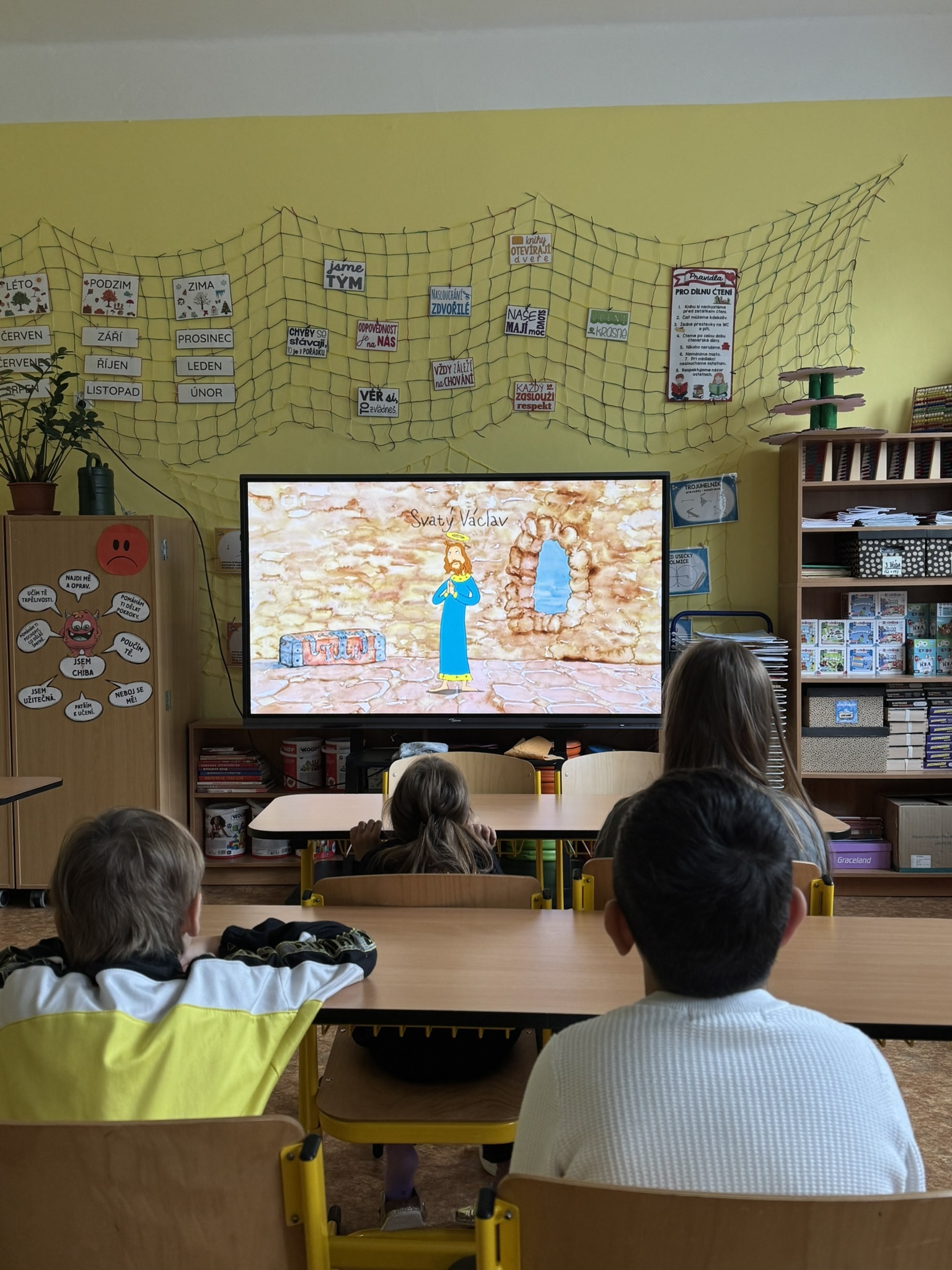 Na úvod jsme si společně pustili krátké video o životě sv. Václava, díky kterému se děti dozvěděly základní informace o jeho životě a významu pro naši historii. Poté jsme četli text a povídali si o důležitosti tohoto svátku.