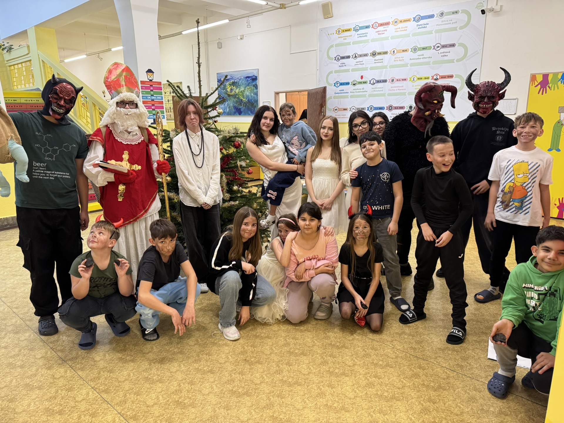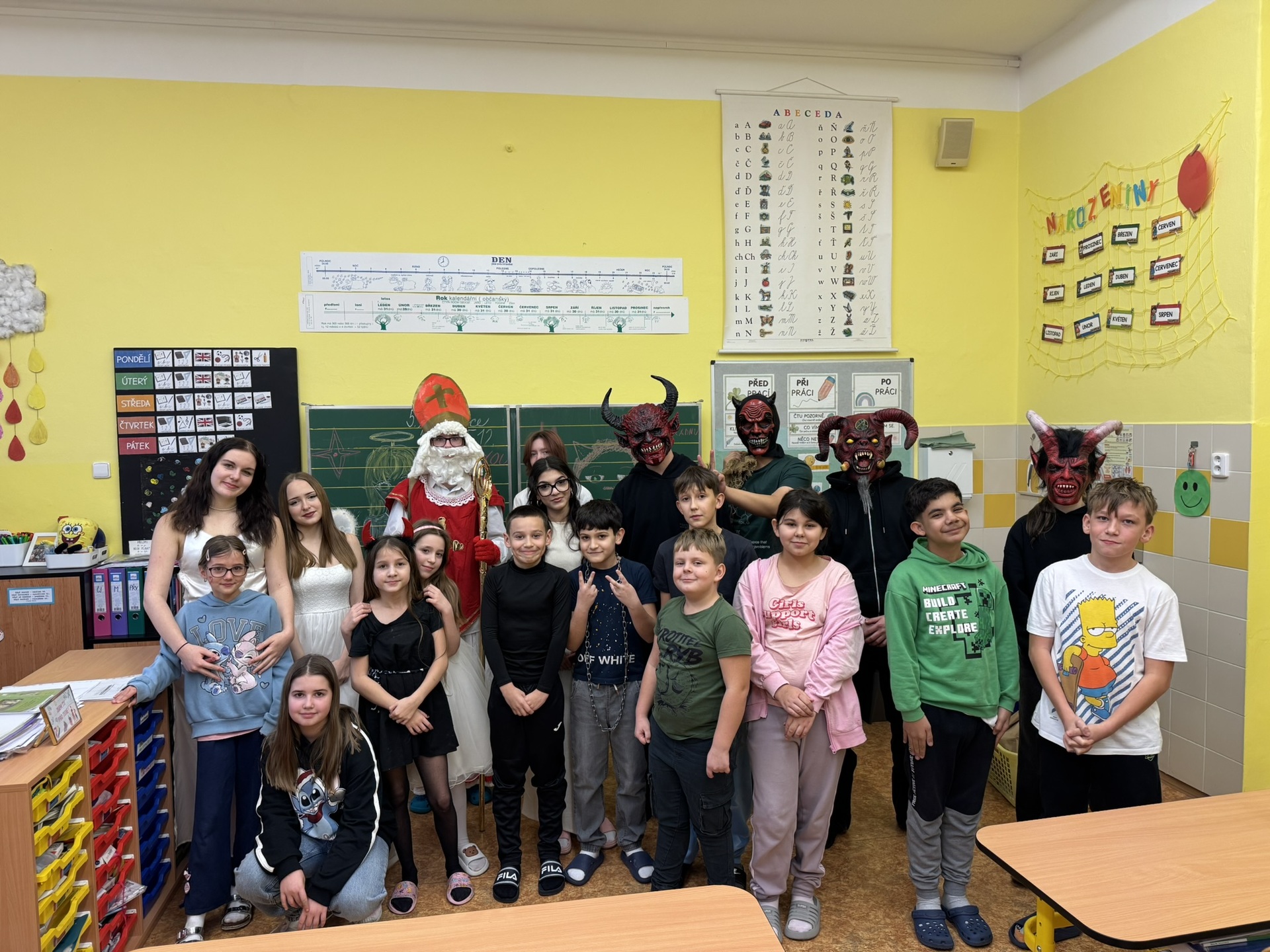 Letos se děti ze 4.B dočkaly tradiční mikulášské návštěvy. Mikuláš, andělé i čerti si s nimi popovídali a děti odměnili sladkou nadílkou. Nechyběl smích, písničky ani trocha napětí.