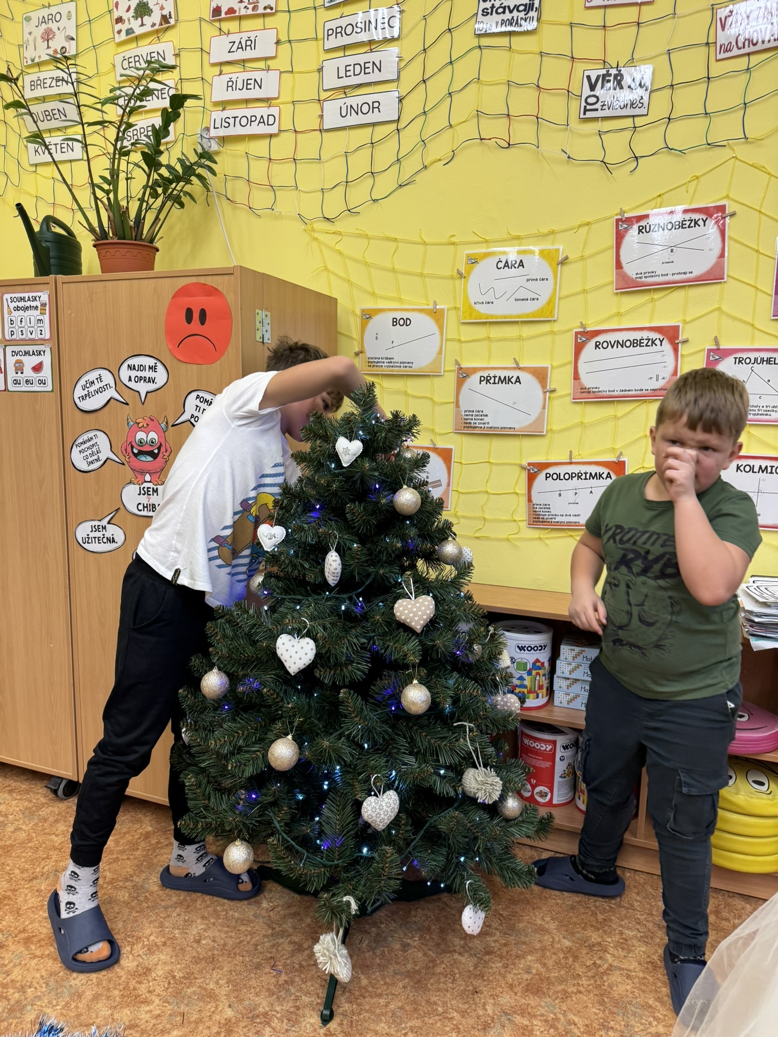 Po milé návštěvě jsme se naladili na blížící se Vánoce. Společně jsme ozdobili třídní stromeček, připomněli si adventní tradice a užívali si sváteční atmosféru. Třída teď září světýlky i vánočními ozdobami a všichni se těšíme na další předvánoční společné chvíle.