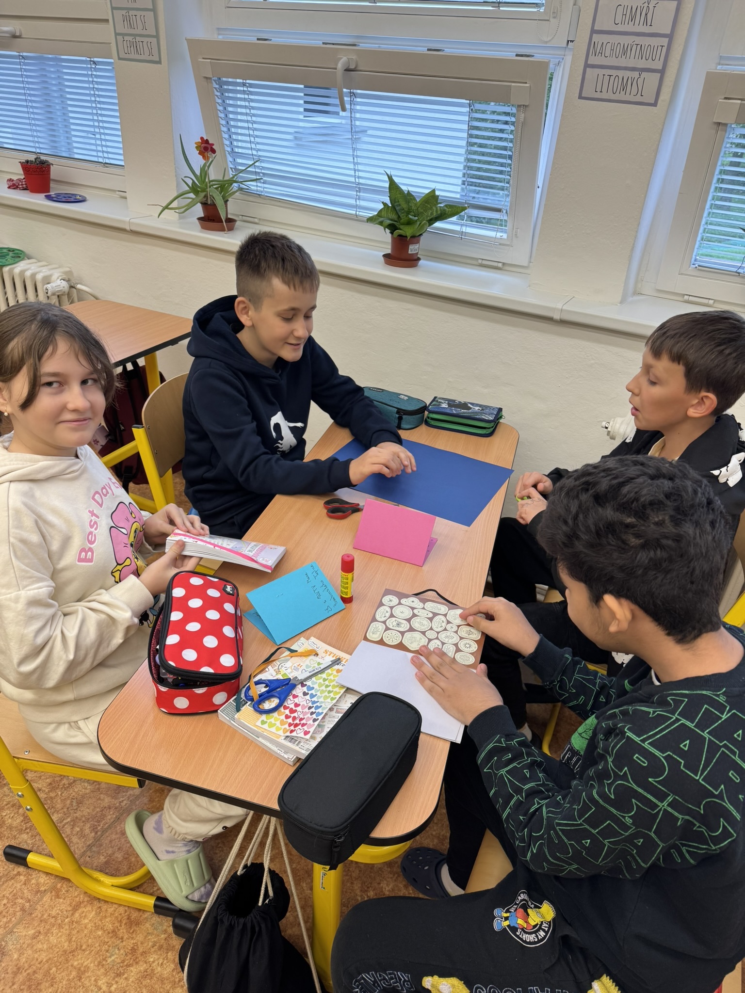 V rámci projektu 72 hodin jsme se třídami 4.B a 6.A tvořili přáníčka s malým dárečkem pro seniory. Současně jsme si připomněli Světový den duševního zdraví, zahráli si různé hry, vzájemně se poznávali a posilovali týmového ducha.