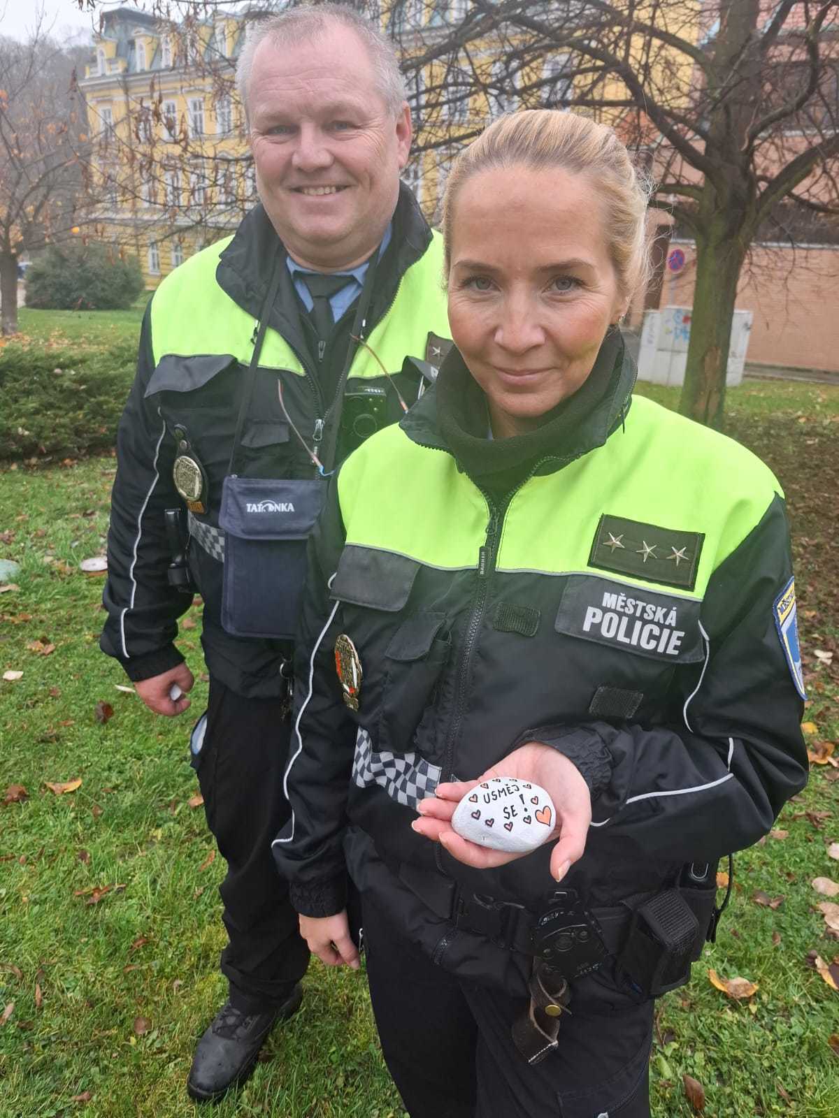 Každý kamínek nesl krátký vzkaz jako „Hezký den“, „Usměj se“ nebo „Dobrou chuť“, s cílem potěšit náhodného nálezce a vykouzlit mu úsměv na tváři. Děti si daly záležet nejen na výtvarném zpracování, ale i na výběru pozitivních slov. Kamínky pak s nadšením roznesly po různých místech v Teplicích – na lavičky, parapety, schody nebo do parků. A že to mělo smysl, se ukázalo hned během akce: „Potkali jsme strážníky Městské policie Teplice, kterým jsme jeden z kamínků věnovali.“ Jejich úsměv byl pro děti tou nejkrásnější odměnou. Aktivita děti nadchla – nejen že si něco samy vytvořily, ale hlavně zažily pocit, že mohou svým činem někomu zlepšit den. Projekt Jsem Laskavec tak opět ukázal, že i drobnosti mohou mít velký dopad. A kdo ví – možná právě váš den rozjasní jeden z našich kamínků.