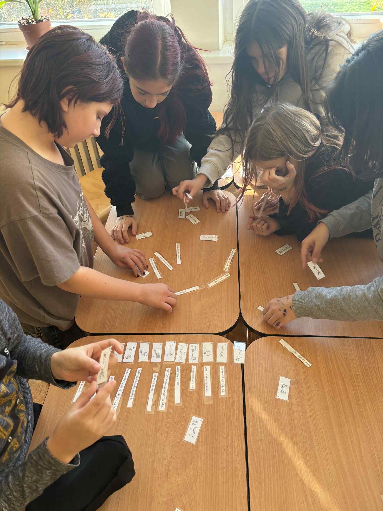 Hned v úvodu se rozdělili do dvou skupin a pokusili se rozluštit přísloví ukrytá v knihách. Po společném vysvětlení všech nalezených rčení následovalo přiřazování přísloví k obrázkům, což se neobešlo bez veselých tipů a diskuzí.
