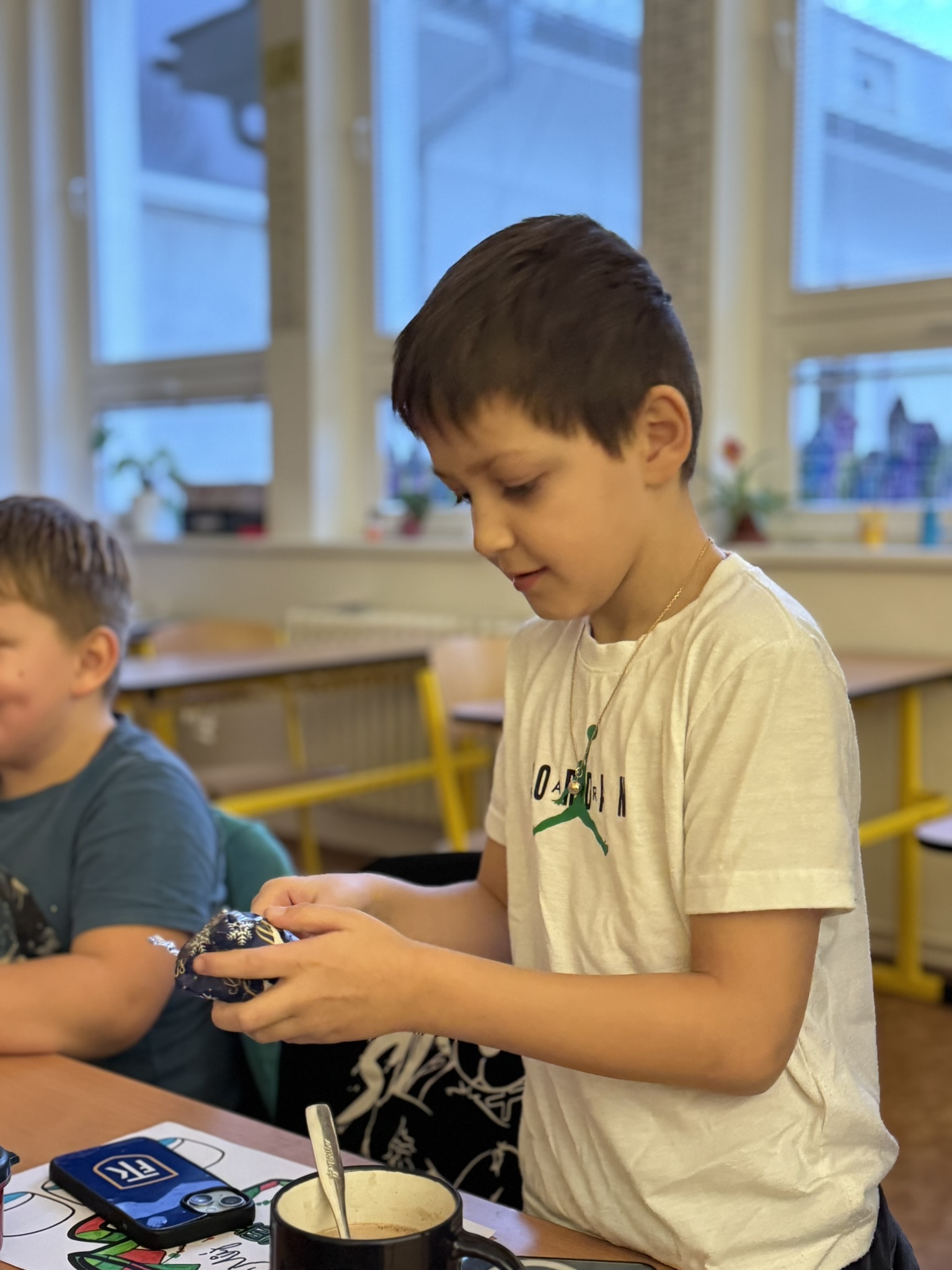 Vánoční besídka třídy 4.B byla krásným zakončením předvánočního období. Třída se na chvíli proměnila v místo plné pohody, smíchu a dobré nálady. Žáci si společně povídali, hráli hry, ochutnávali drobné dobroty a užívali si čas strávený se spolužáky mimo běžnou výuku.