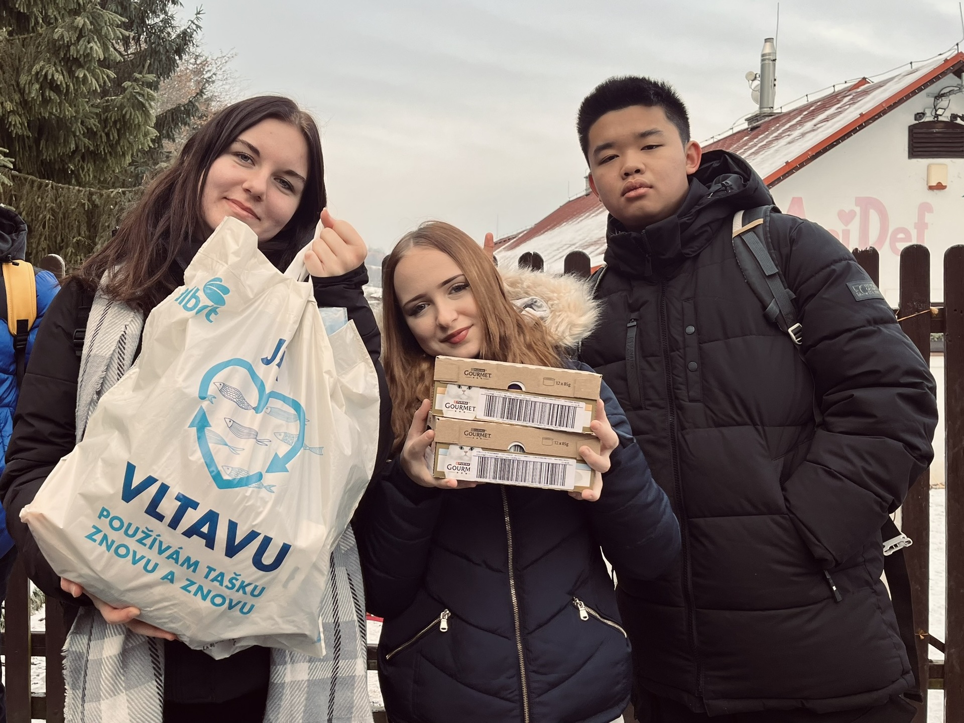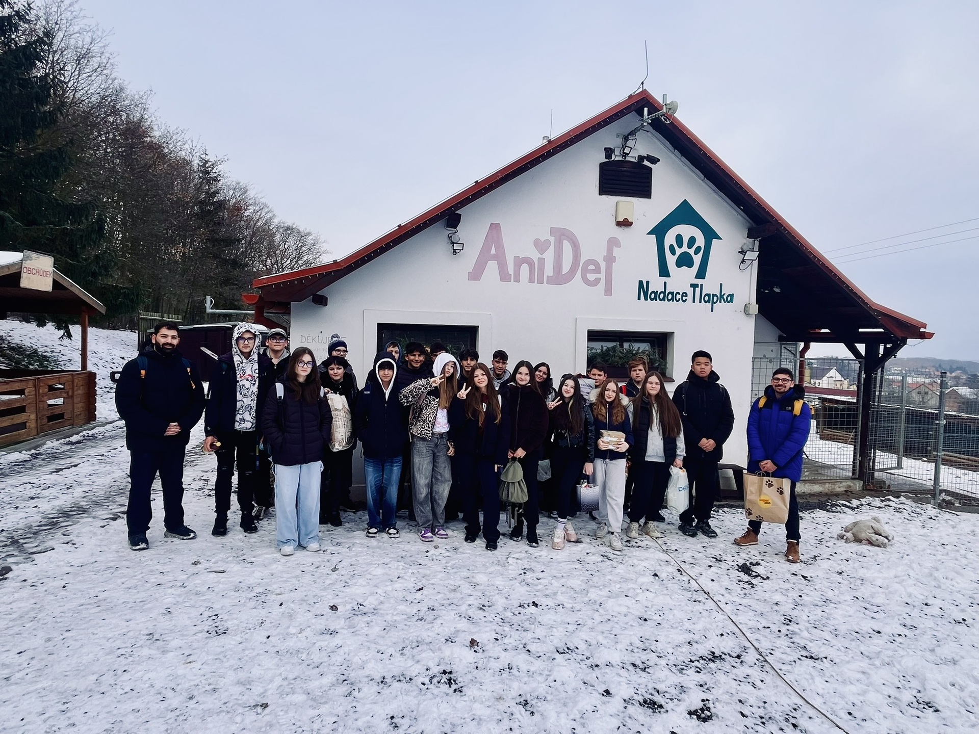 Pracovnice útulku nás provedly celým areálem, představily nám psy, kočky a některá hospodářská zvířata, která zde čekají na svůj druhý domov, a přiblížily nám fungování útulku. Součástí návštěvy byla také možnost vyvenčit dva pejsky, což celou akci krásně obohatilo. Náš dobročinný den jsme zakončili příjemnou procházkou zasněženou krajinou.